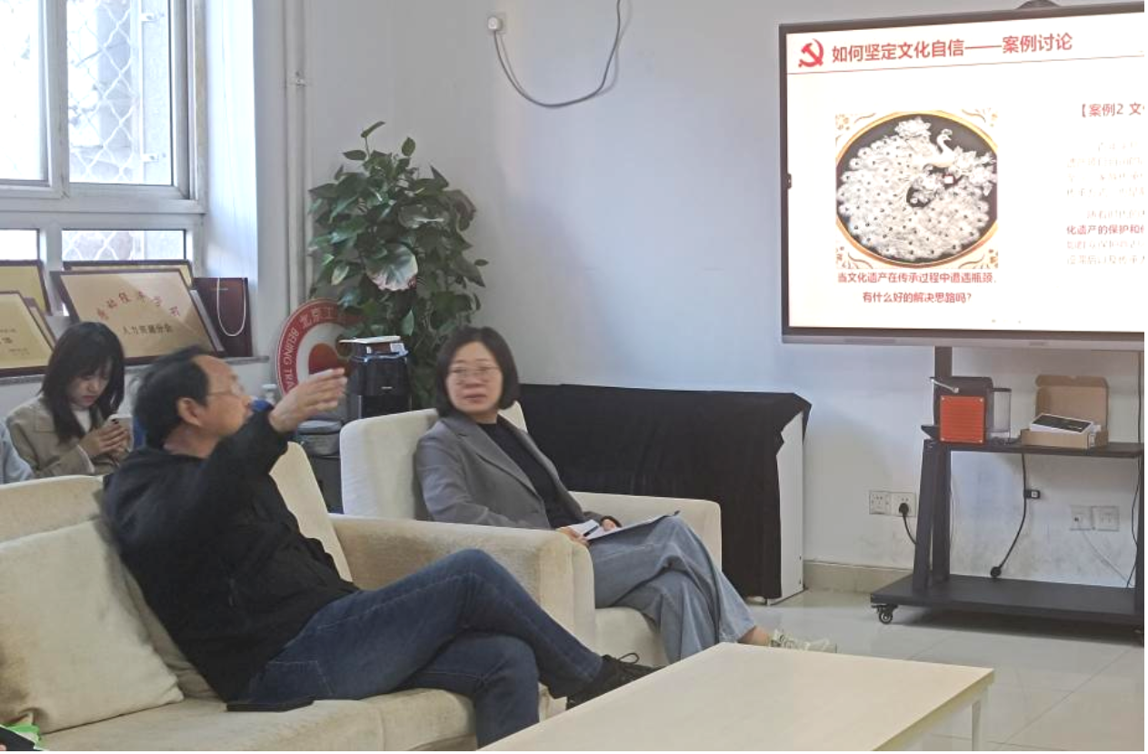 面对优秀传统文化的传承瓶颈,两个支部的同志也充分讨论了可行的解决办法。易定红老师借鉴老北京四合院与莱茵河畔古堡的文物保护经验,指出可以通过商业化方式分散政府的文物保护压力,将传统文化的传承与现代化进程相结合,通过促进优秀文化产品的市场化来挽救濒危工艺品。