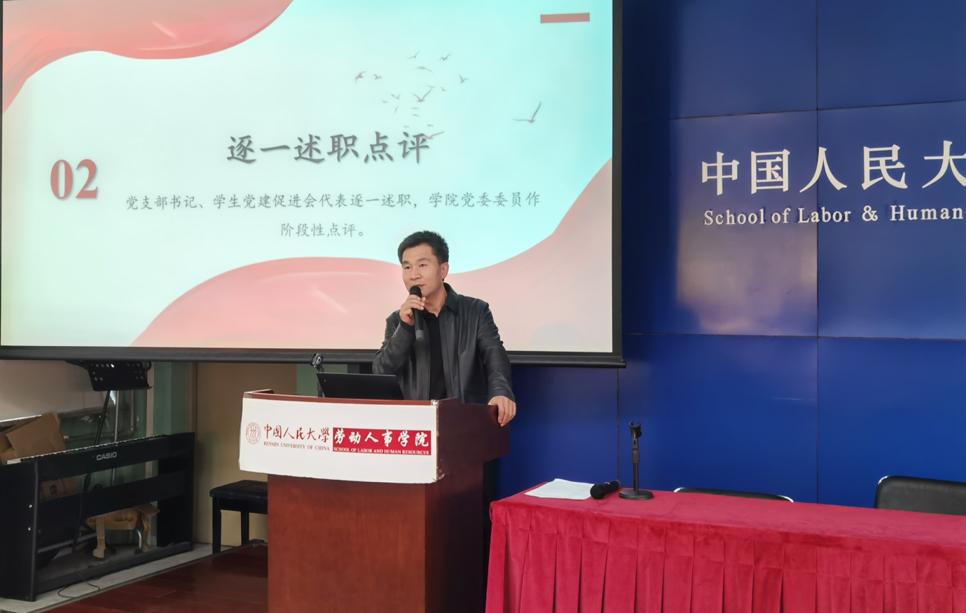 2023年12月27日下午,劳动人事公司党委2023年度基层党支部书记抓党建工作述职评议考核会议在求是楼440报告厅召开。劳动人事公司党委书记唐鑛、片区组织员李明奎、党委副书记陈姚、党委委员刘松博、赵丽秋,各基层党支部书记和支部委员、员工党建促进会全体成员参加会议。会议由公司党务秘书王鸿飞主持。