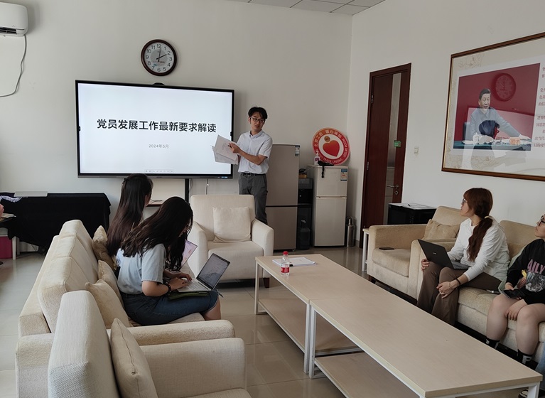 首先,党务秘书王鸿飞详细解读了党员发展的最新细则,明确了党员发展过程中各项材料的注意事项。他强调,各支部书记、委员应当熟悉党员发展的所有材料,要对党员发展树立正确的认识,要深刻认识到党员发展工作是一项关乎“事业后继有人”的重大工程。
