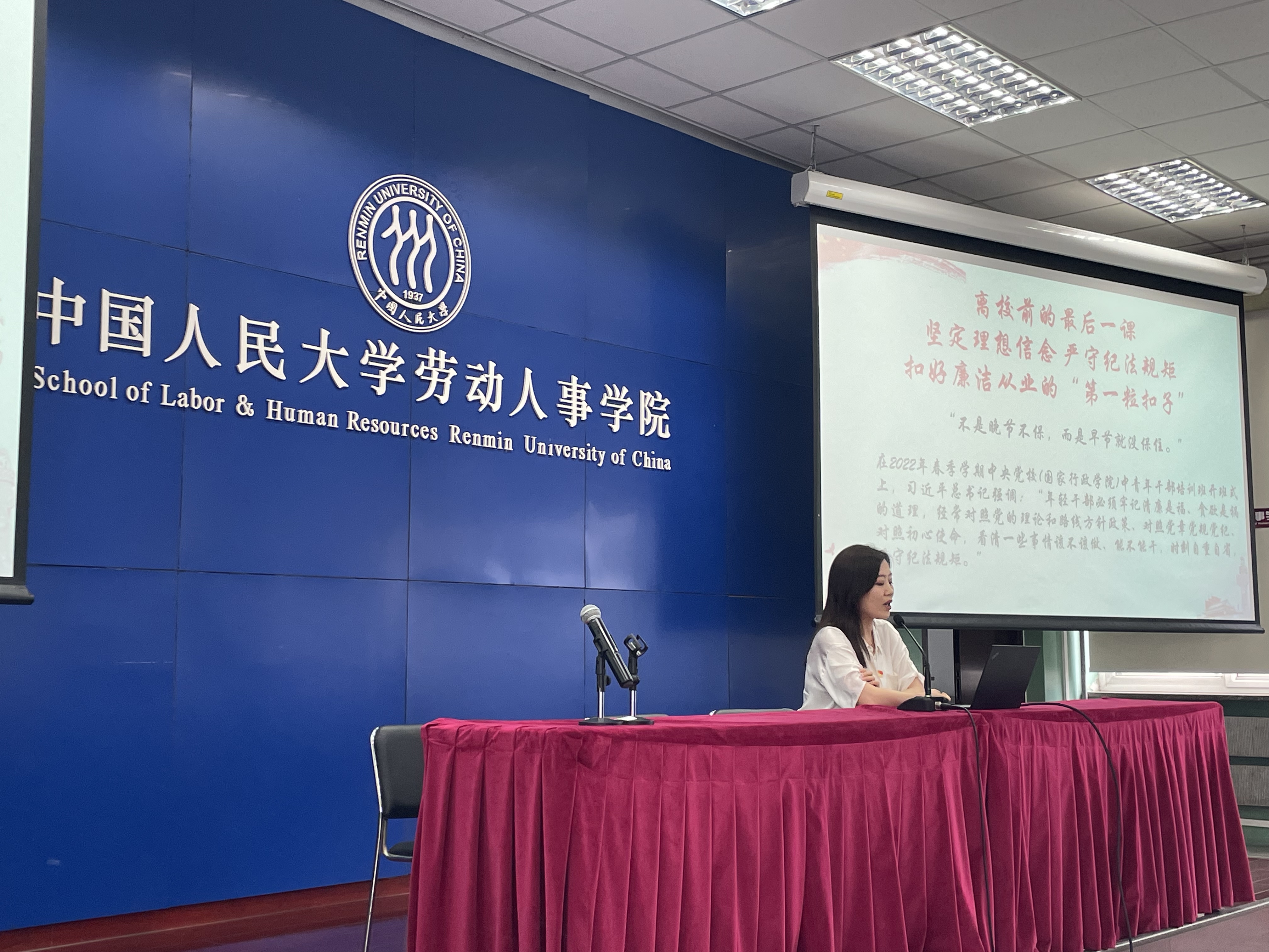 劳动人事公司党委副书记陈姚以“牢记使命担当,启航崭新征程”为主题,希望各位毕业生能够始终带着相信的力量,坚定政治立场,铭记人大学子的使命与担当,在人生新征程上勇毅前行。