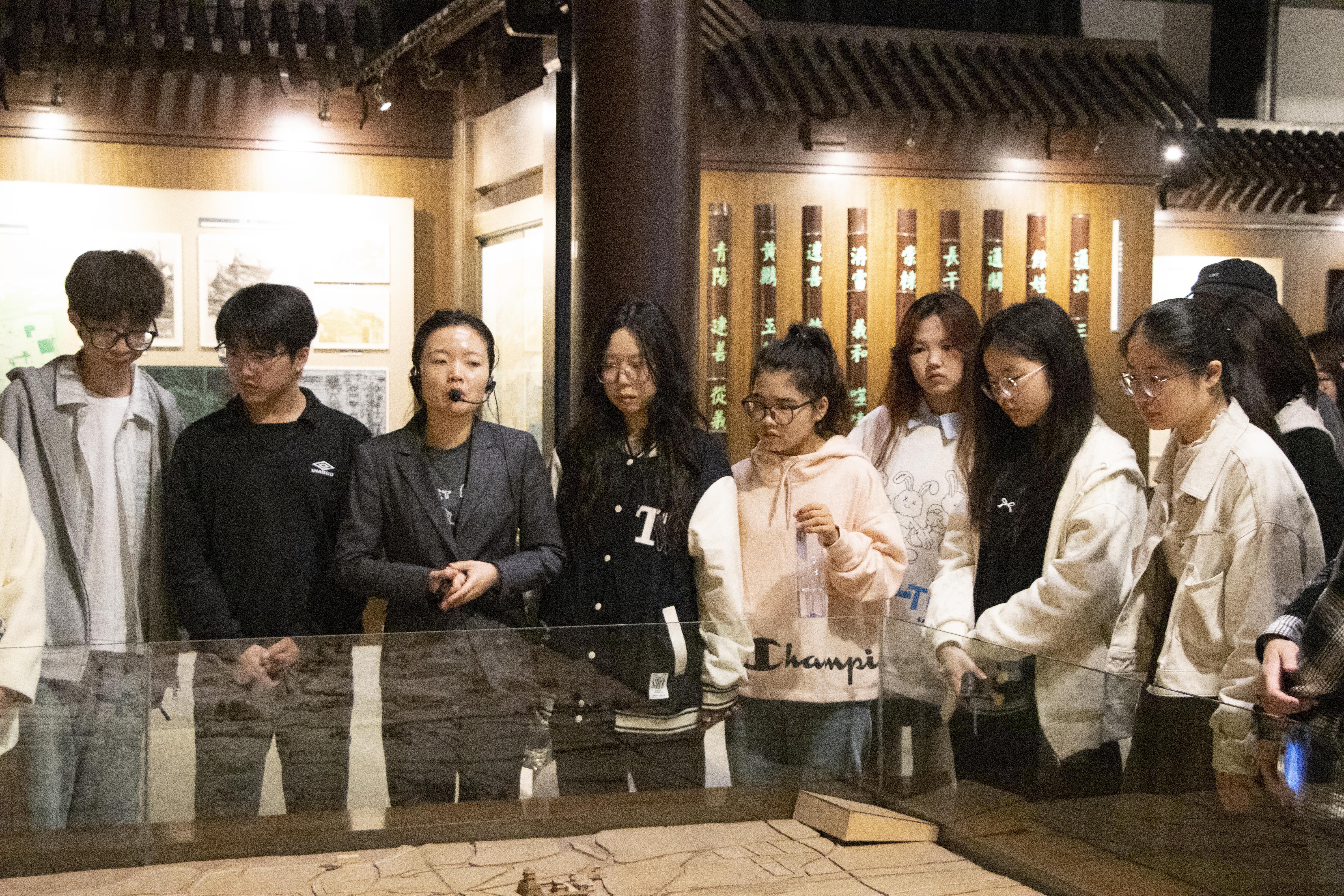 在工作人员的带领下,大家首先来到了古代展馆部分进行参观。这部分展馆包括春秋的建城、唐宋的兴盛、明清的繁盛、城市变迁中的亮点四个部分,通过平江图、姑苏繁华图、山塘、虎丘、民居、历史文化名镇以及桥、塔、牌坊、窗、厅、阁、石、匾等体现苏州的历史变迁和东方水城的特色风貌。现代馆部分主要呈现了苏州的发展成果和未来规划。穿过非物质文化遗产走廊,师生见证了昆曲、缂丝、宋锦的传承与发展;面向“数读苏州”,从一个个数字背后看到了苏州发展的累累硕果;俯瞰苏州城市沙盘,了解到苏州的城市规划和未来战略。整场展览向在场师生全面展示了当代苏州保护古城、建设新区、开发工业园区的主要成就以及未来苏州规划建设的宏伟蓝图。