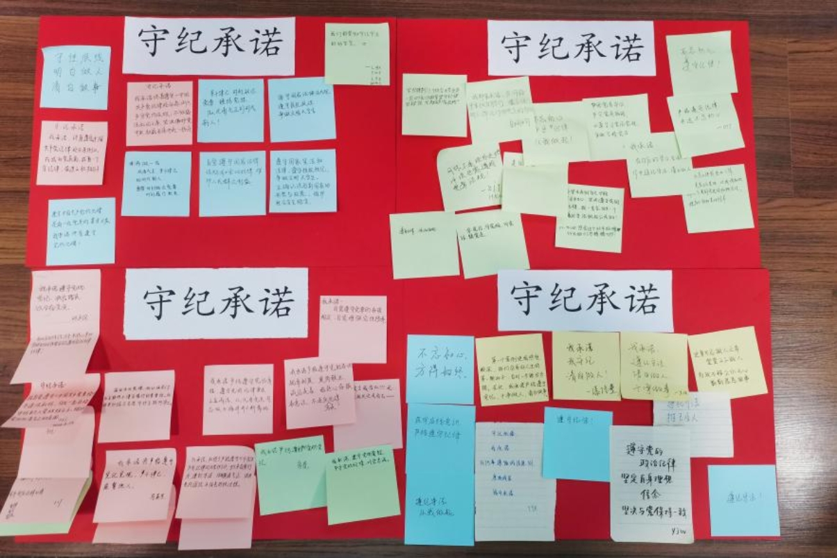最后,支部副书记陈晓彤组织大家写下自己的“守纪承诺”,支部成员踊跃参与,现场氛围热烈。“守纪承诺”既是表率担当,也是约束警醒,要求各位同志自觉提高遵规守纪的意识,坚持做严守纪律的模范,明确是非界限、清楚自律标准、守住行为底线。