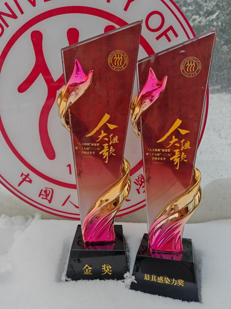 2023年12月10日,“旭日东升”人大组歌展演暨第三十七届“一二九”合唱音乐节在明德堂隆重举行。面对实力强劲的各院代表队,必威西汉姆官网平台代表队精神饱满、斗志昂扬,以一首欢快激昂的《南泥湾》,荣获必威西汉姆官网平台“人大组歌”展演金奖、最具感染力奖。此次获奖是自2019年以来连续五年蝉联“一二·九”合唱比赛金奖,继2022年连续两年蝉联金奖第一!