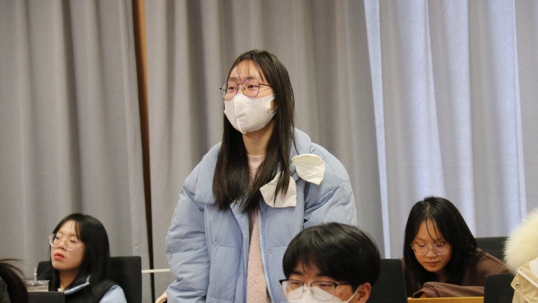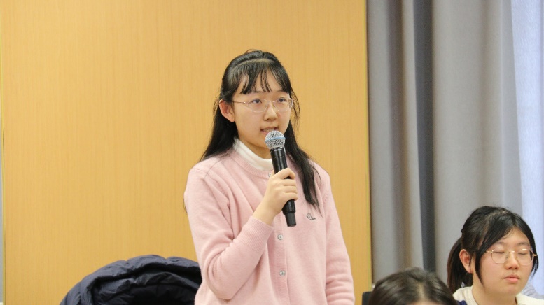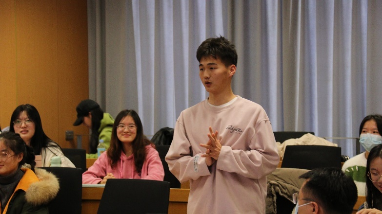 在第三环节同学们的交流感悟中,同学们积极发言,孙柳嘉同学结合时事,以对人才强国战略在新时达的发展为题,对科技创新人才的创造活力激发展开分享。艾昕同学以作为人大学子的我们如何响应国家人才强国的战略号召,贡献自己的力量为题展开分享,从理论和政策两方面进行分析。