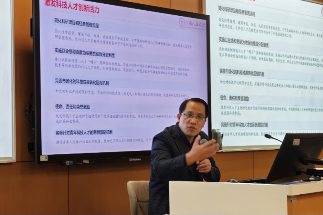 苏中兴教授以人才强国战略和人大青年的奋进方向为主题,为同学带来了一次深入而扎实的学习。苏老师在汇聚全球高端智力资源、走好人才自主培养之路、人才评价引导科技创新、全面激发人才创新活力四个方面,深入浅出地为同学们讲授人才强国战略的深层内涵与发展要求。最后苏老师向在场的同学们提出殷切期望,在大有可为的时代奋力前进。