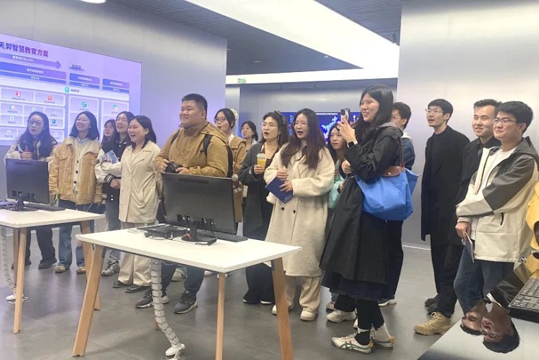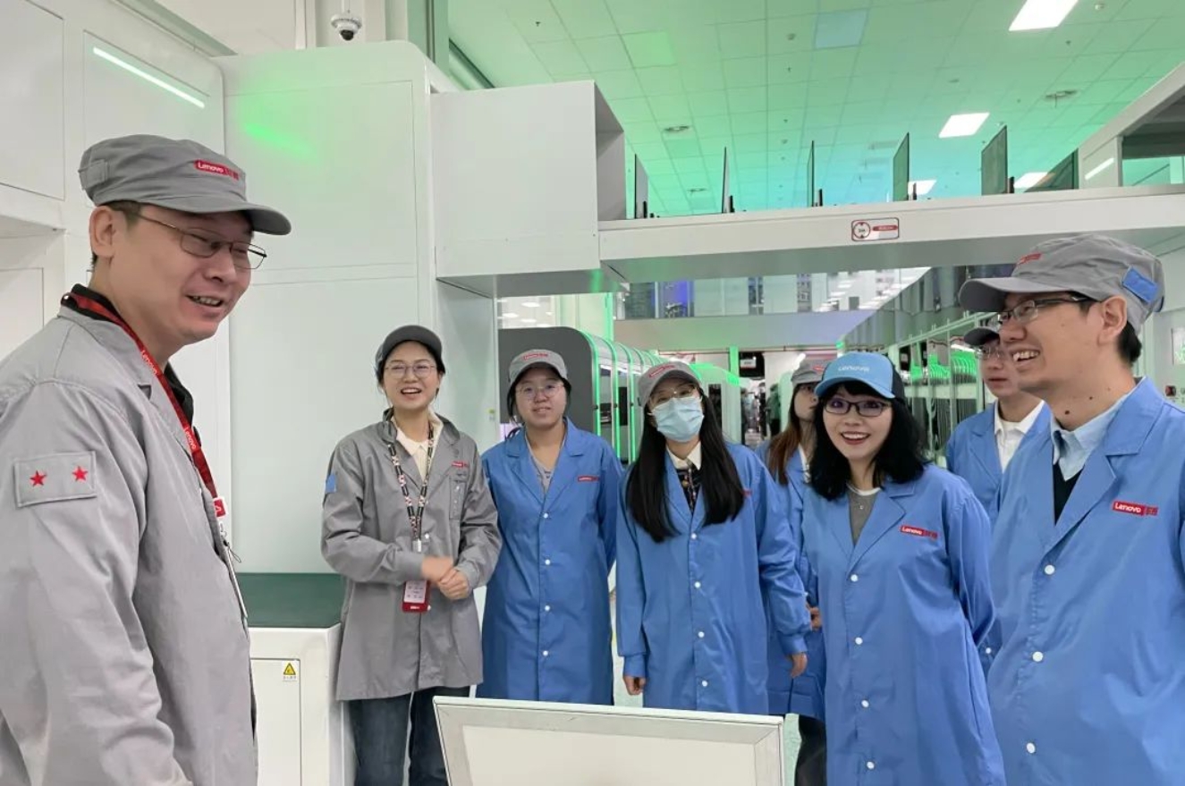 公司师生在联想未来中心三层展厅内,亲身体验了联想天津工厂高度智能化的生产车间以及先进的自动化智能笔记本生产线,深入了解了现代制造业的前沿技术和高效生产流程。