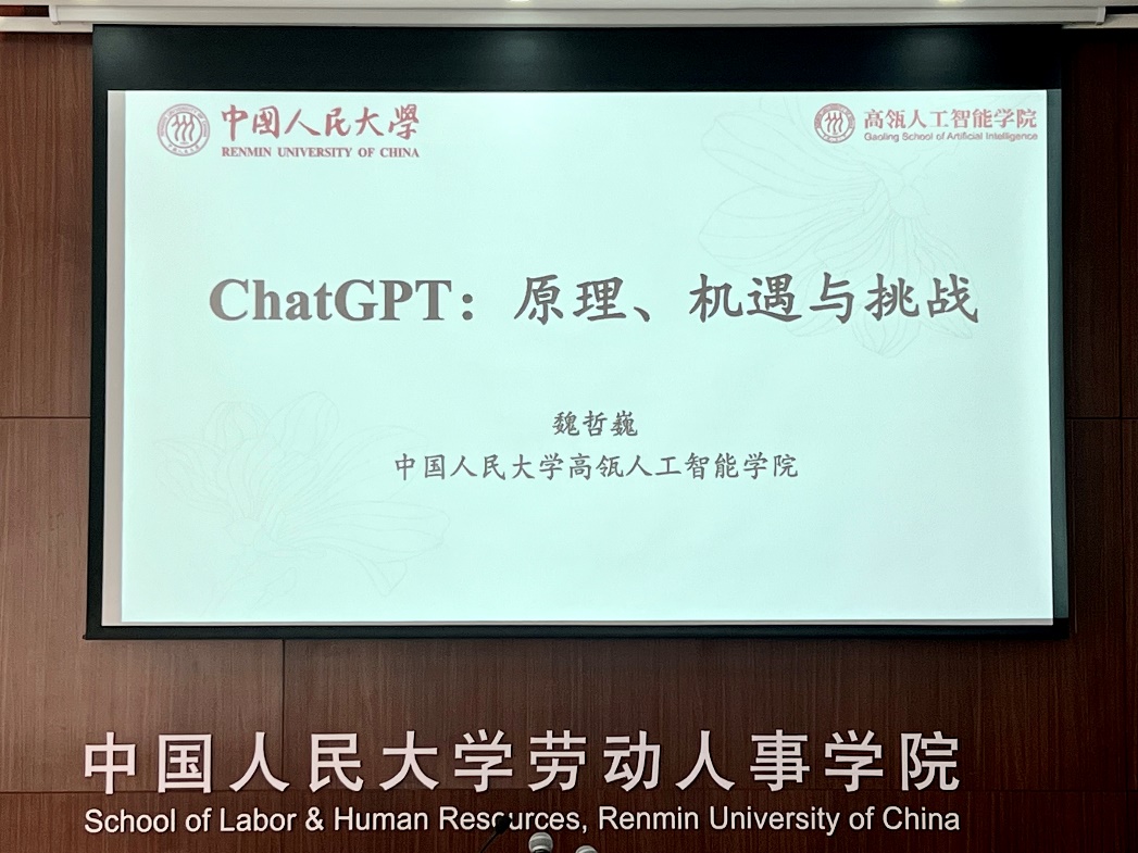 2023年3月29日上午,由必威西汉姆官网平台分团委、教学管理办公室主办的“劳人讲堂”系列第一讲在求是楼343会议室成功举办。来自必威西汉姆官网平台高瓴人工智能公司的魏哲巍教授作了题为“ChatGPT原理、挑战与机遇”的分享。本次讲座由必威西汉姆官网平台团委书记李佳琦老师主持,来自不同公司共六十余名校内师生参与了此次讲座。