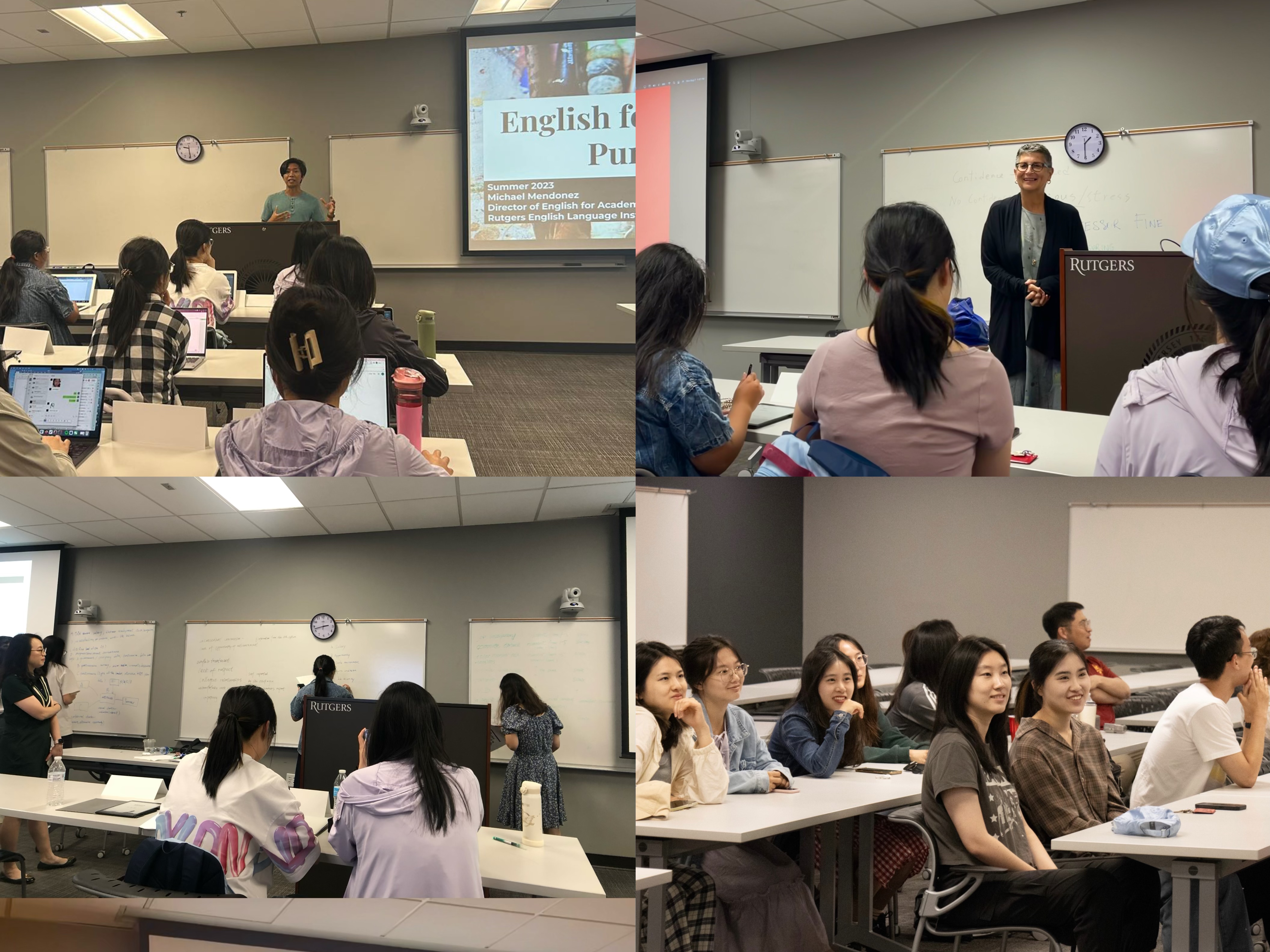 研学期间,员工们参加了十场学术前沿讲座。罗格斯大学管理与劳动关系公司经理Adrienne Eaton教授介绍了美国劳动关系的理论与实践;副经理Mingwei Liu教授在两场讲座中分别介绍了中国劳动关系的理论与实践,以及工作与组织的未来展望;副经理Tracy Chang副教授讲授了积极领导力在企业管理中的应用;WilliamCastellano教授讲述了全球视野在领导力发展中的重要作用;Janice Fine教授介绍了美国策略性推动劳动法实施的经验;Yana Rodgers教授讲解了最低工资对就业和员工福祉的影响;Jie Feng副教授讲授了战略人力资源管理的理论与实践;Xiangmin Liu副教授讲授了企业人力资源管理的分析和实践;Christopher To助理教授介绍了企业协商和谈判的理论与操作。此外,罗格斯大学学术写作项目主任Michael Mendonez讲授了四堂英语写作课。通过学术讲座和英语课程,员工们学习了企业人力资源管理和劳动关系的前沿理论与实践,了解了中美两国在相关问题上的共同点与差异,并夯实了英文学术写作基础。