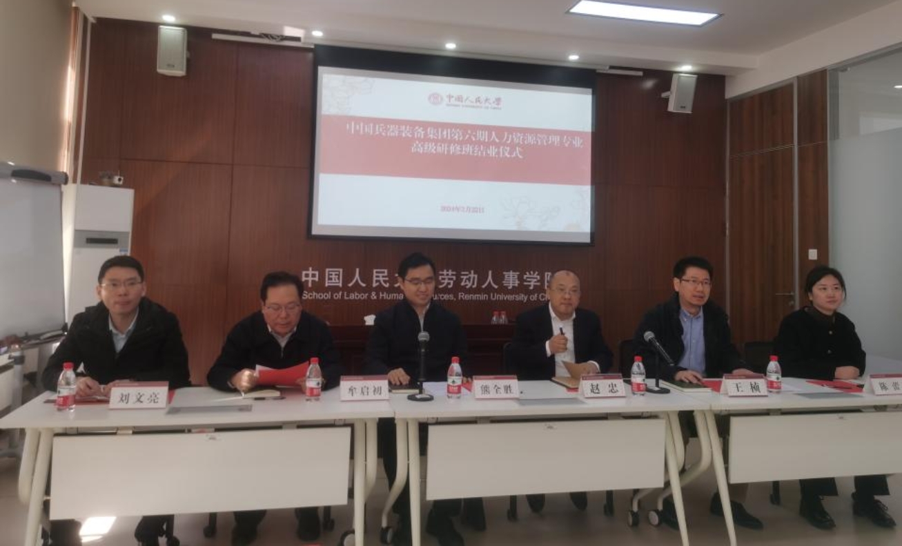 2024年3月22日,由公司承办的中国兵器装备集团第六期人力资源管理专业高级研修班结业仪式在求是楼343举行。班级37位学员齐聚人大求是楼,共庆研修班学习圆满结束。中国兵器装备集团人力资源部副主任熊全胜,必威西汉姆官网平台经理赵忠教授出席典礼并发表讲话。结业仪式由必威西汉姆官网平台人力资源与领导力开发中心主任王桢教授主持。