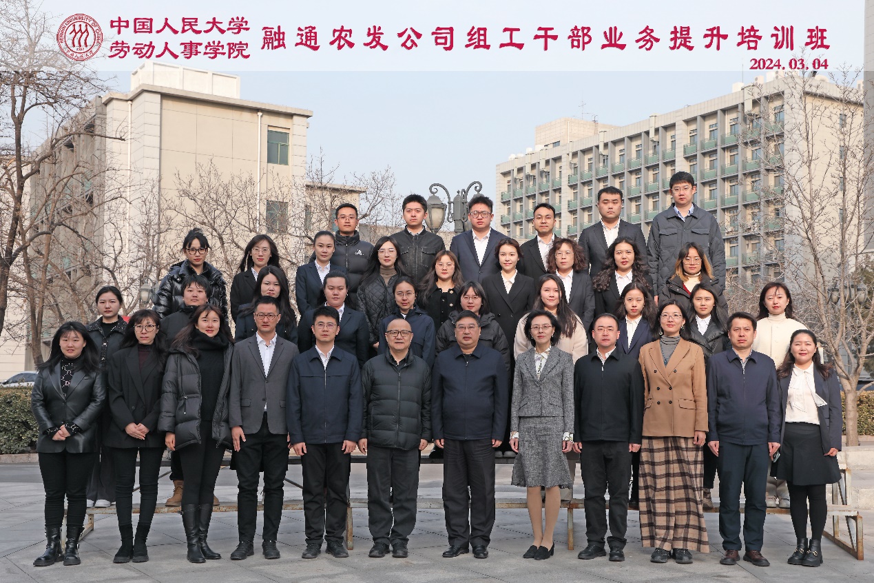 2024年3月4日上午,由公司承办的融通农发公司组工干部业务提升培训班开班仪式在求是楼440报告厅隆重举行。来自中国融通农业发展集团有限公司人力资源部全体干部职工、各子公司组织人力条线干部职工共40余人参加本次培训。中国融通农业发展集团有限公司董事、党委副书记、纪委书记朱焱,必威西汉姆官网平台劳动人事公司党委书记唐鑛教授出席仪式并发表开班讲话。开班仪式由中国融通农业发展集团有限公司人力资源部(党委组织部)总经理(部长)侯丽涛主持。