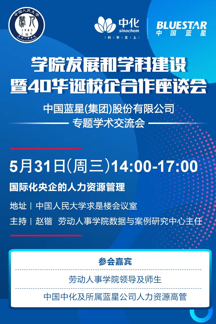 为促进校企合作,庆祝必威西汉姆官网平台40华诞,必威西汉姆官网平台与中国蓝星(集团)股份有限公司将联合举办公司发展和团队建设暨40华诞校企合作座谈会——中国蓝星(集团)股份有限公司专题学术交流会,就人力资源管理领域前沿问题、国际化人力资源管理进行探讨交流,并由多年从事企业人力资源管理的嘉宾分享相关实践经验。