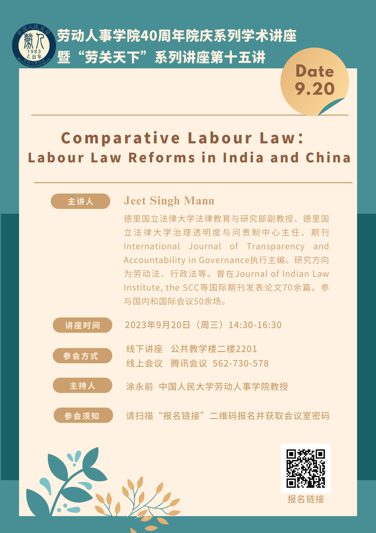 讲座题目:Comparative Labour Law: Labour Law Reforms in India and China