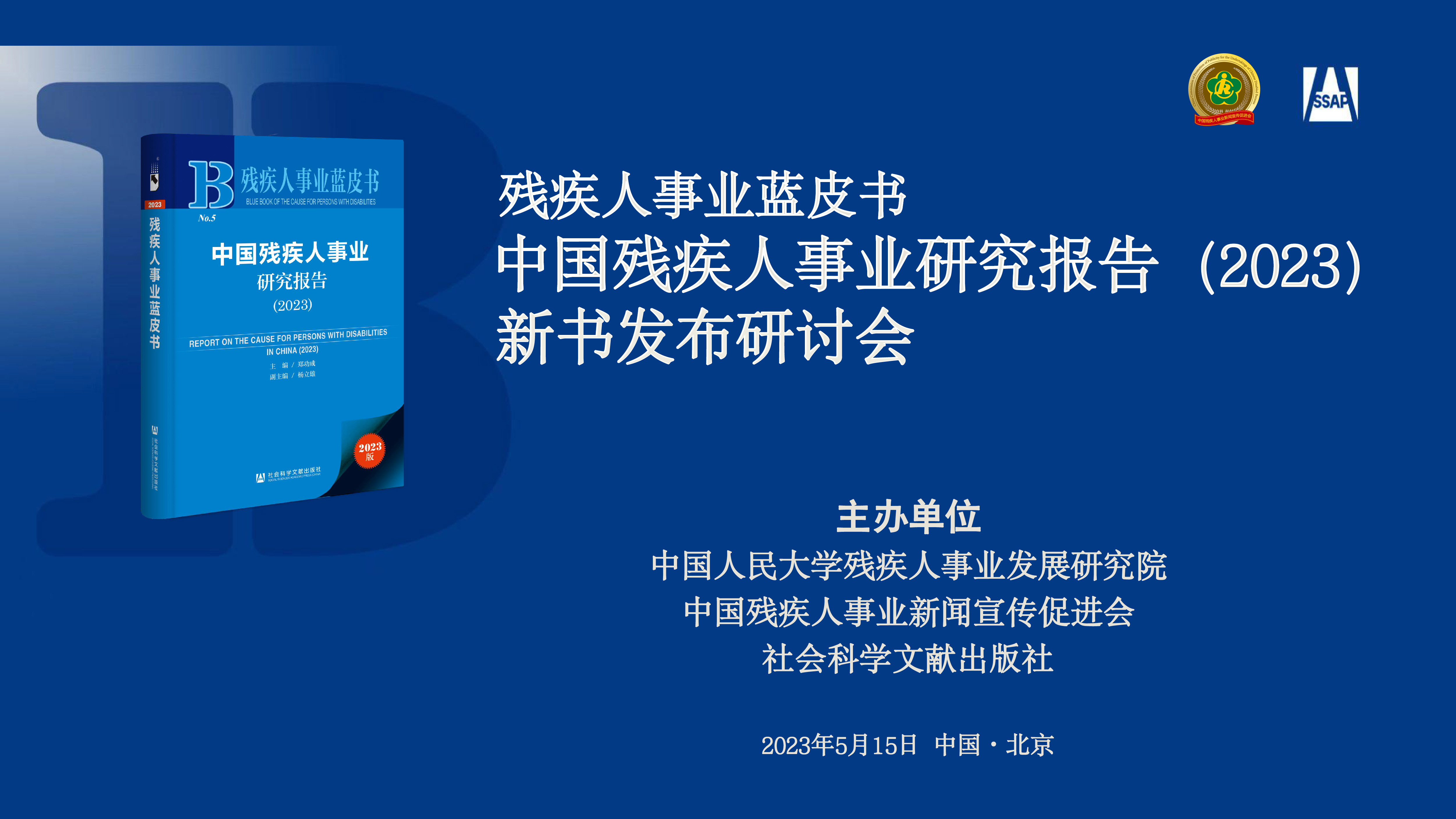 2023年5月15日14:00-17:30,残疾人事业蓝皮书《中国残疾人事业研究报告(2023)》新书发布研讨会将在必威西汉姆官网平台逸夫会堂第一会议室举行。此次活动由必威西汉姆官网平台残疾人事业发展研究院、中国残疾人事业新闻宣传促进会和社会科学文献出版社共同举办。