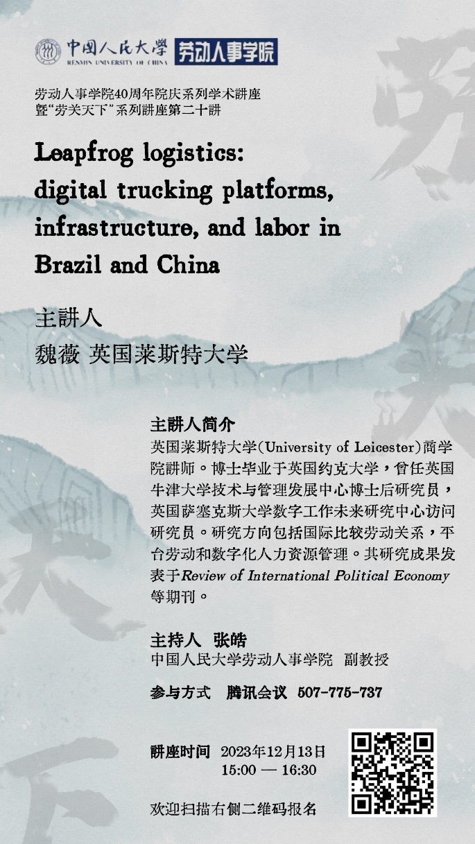 讲座题目:Leapfrog logistics: digital trucking platforms, infrastructure, and labor in Brazil and China