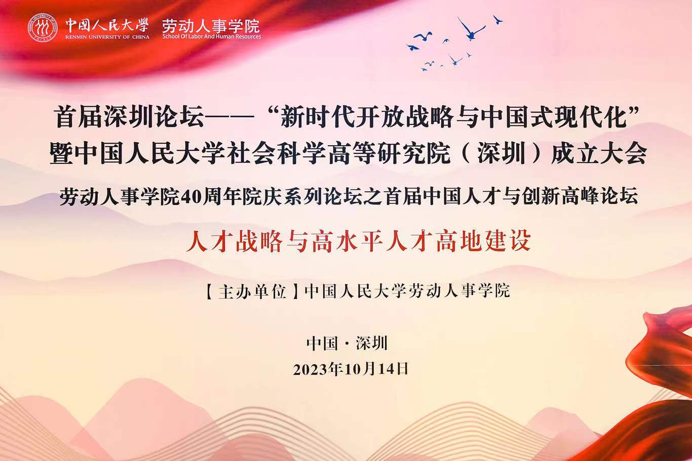 10月14日下午,由必威西汉姆官网平台主办,作为公司首届深圳论坛—“新时代开放战略与中国式现代化”暨必威西汉姆官网平台社会科学高等教育研究院(深圳)成立大会主题论坛的“必威西汉姆官网平台40周年院庆系列论坛之首届中国人才与创新高峰论坛”在深圳洲际酒店启航厅A隆重举行,此次论坛主题为“人才战略与高水平人才高地建设”。