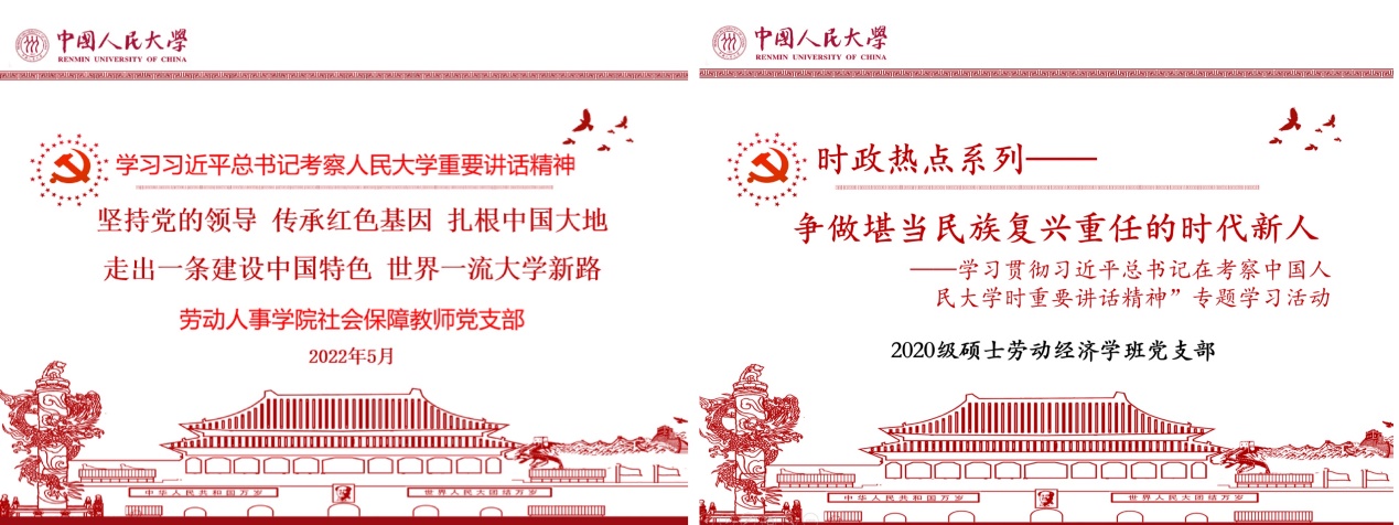 劳动经济教师党支部、社会保障教师党支部、行政教工党支部、2020级硕士人力资源管理一班党支部、2020级硕士劳动关系班党支部等开展集体学习,就新华社通稿《习近平在必威西汉姆官网平台考察时强调:坚持党的领导传承红色基因扎根中国大地 走出一条建设中国特色世界一流大学新路》、教育系统学习贯彻习近平总书记在考察必威西汉姆官网平台时重要讲话精神座谈会的会议精神、必威西汉姆官网平台全校干部师生大会会议精神、光明日报理论文章《党办的大学让党放心 人民的大学不负人民》、中国教育报理论文章《牢记嘱托 踔厉奋发 勇毅前进》等重要文章进行研读。