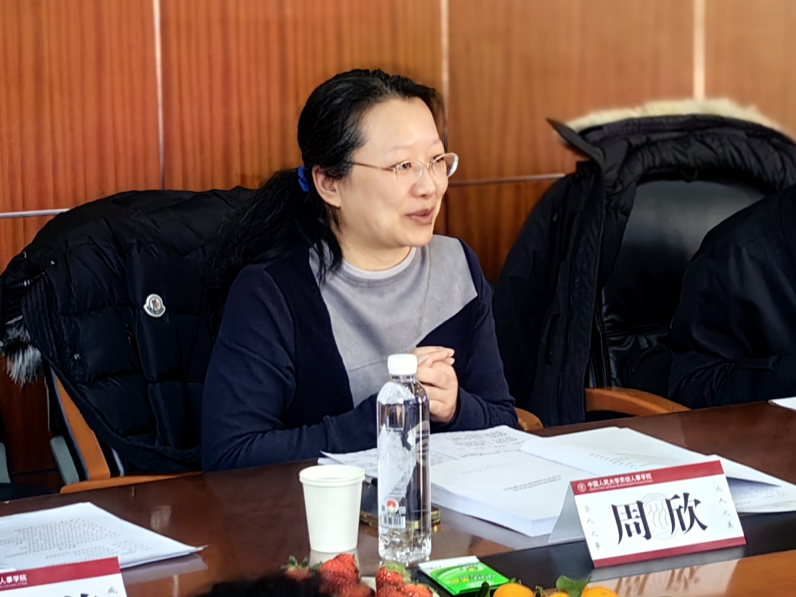在会议第一阶段,博士生刘鹏代表课题组向项目委托方与专家评审组进行结项汇报。课题组在习近平总书记关于和谐劳动关系的系列重要论述的指引下,结合劳动关系理论提出了和谐劳动关系的“两层次三内涵”并构建了和谐劳动关系“三合金字塔”模型。通过文献分析并综合运用主成分分析、模糊综合评价法等科学方法进行了评价指标的选取与赋权。通过多轮次实地调研对指标体系进行了校正与检验,最终形成中国特色企业和谐劳动关系评价指标体系。