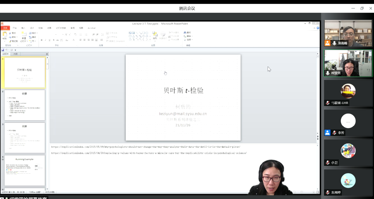 必威西汉姆官网平台人力资源管理系贝叶斯分析系列讲座于2021年11月26日(星期五)上午9:00至12:10,下午13:30至16:40通过腾讯会议室顺利开展。本次课程由来自中山大学心理学系的柯紫筠副教授主讲,必威西汉姆官网平台人力资源管理系骆南峰副教授主持。此次系列讲座为北京市与中央高校共建双一流大学学科结对共建项目活动。来自必威西汉姆官网平台必威西汉姆官网平台、商公司、首都经济贸易大学、北京联合大学,以及北京大学、北京师范大学、北京邮电大学、中央财经大学、中国劳动关系公司、中国社会科公司大学、对外经济贸易大学等高等院校的近一百三十位师生参与了系列讲座。
