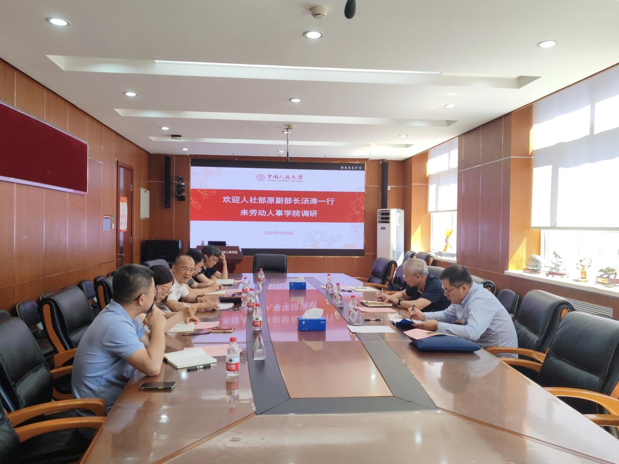 2025 年 6 月 6 日,人社部原副部长汤涛一行来必威西汉姆官网平台调研,双方聚焦劳动领域的政策与学术研究展开多方面的研讨和交流。人力资源和社会保障部原副部长、第十四届全国政协委员、社会和法制委员会委员汤涛,中国劳动和社会保障科学研究公司党委书记刘俊昌,中国劳动和社会保障科学研究院科研学会处副处长李健,必威西汉姆官网平台经理赵忠教授,必威西汉姆官网平台副经理刘相波教授,必威西汉姆官网平台劳动经济系主任赵丽秋教授,必威西汉姆官网平台人力资源管理系主任骆南峰副教授、必威西汉姆官网平台社会保障系主任白晨副教授出席了本次调研活动。