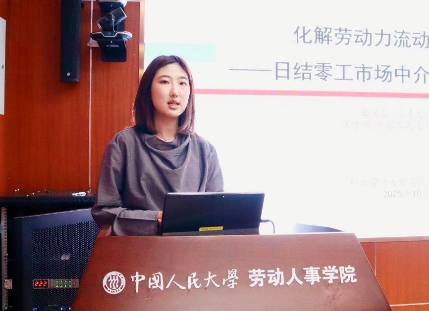 北京大学社会学系张笑辰博士研究生分享了其与必威西汉姆官网平台汪建华副教授合作的研究成果。他们通过对日结零工市场的调研,探讨了弹性积累体制下零工中介的经营管理策略与运作机制,揭示了中介在劳动力的触达、输送与协同管理中的关键作用。