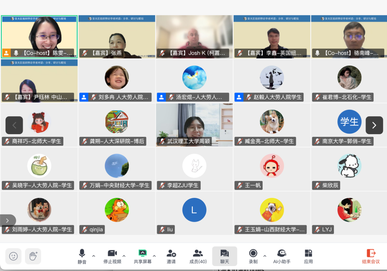 在会议总结环节,主持人对各位嘉宾的精彩分享和参与者的积极提问表示感谢,并介绍了当前国际组织悖论学术社群与中国本土社群的发展现状,分享了国内组织悖论研究学者社群的建设规划,诚挚邀请更多关注该领域的学者共同推动组织悖论研究的繁荣发展。本次会议不仅促进了跨地域、跨文化的学术交流,也激发了青年学者对组织悖论研究的关注与兴趣,拓展了研究视野,进一步为后续的合作研究营造了良好的学术网络与互动平台。