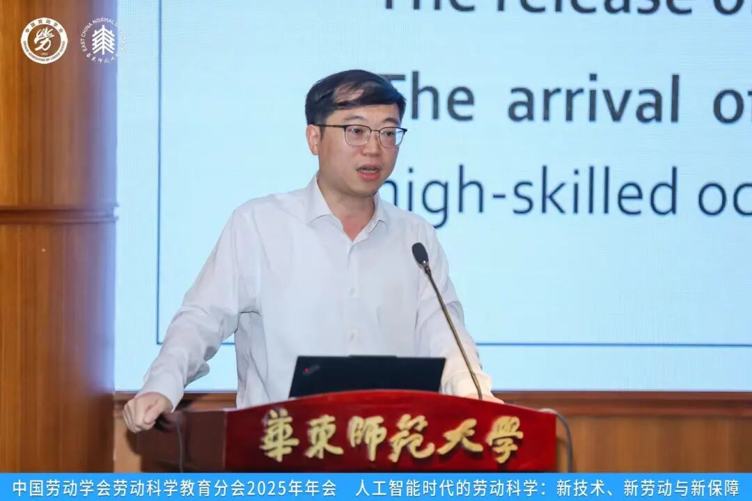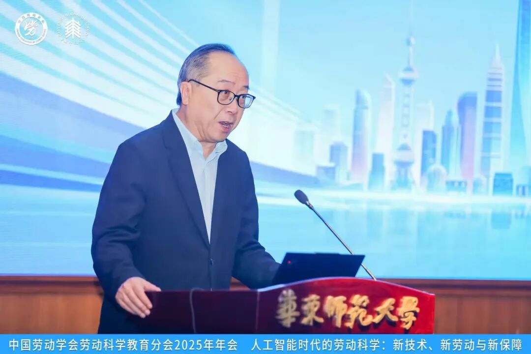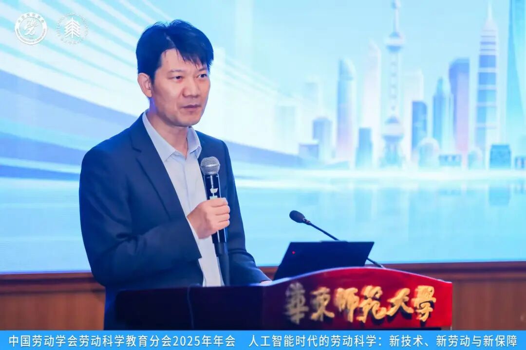 华东师范大学党委常委、副董事长吴健教授代表承办方致欢迎辞。他对本次年会的举办表示热烈祝贺。他指出,本届年会的主题契合国家战略与时代需求,是推动劳动科学与教育研究协同创新的重要举措。他强调,华东师范大学近年来积极推进人工智能与教育融合发展的战略布局,公共管理公司以“人工智能与公共治理融合”为战略方向,组建一支覆盖新业态用工关系、劳动保障与心理研究的综合研究团队。公司将以本次年会为契机,进一步加强与学界的合作,推动人工智能与劳动科学的跨学科研究,服务国家重大政策决策需求。