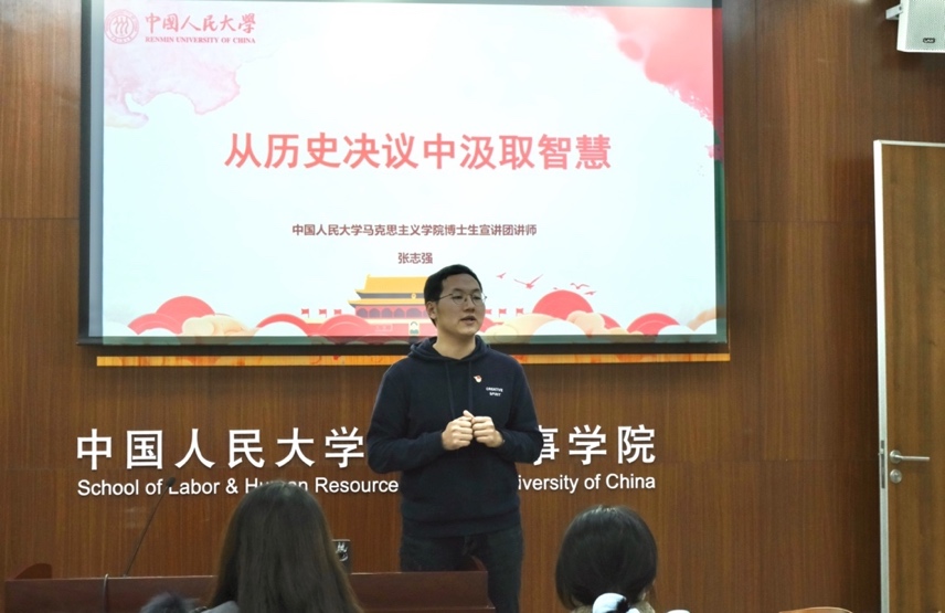 11月17日,必威西汉姆官网平台2021级硕士人力资源管理一班党支部与信息资源管理公司2021级硕士2班3班联合党支部在求是楼343会议室举办党的十九届六中全会精神联学活动,以“党的历史决议与党的百年奋斗经验”为主题开展学习研讨。本次联学活动邀请马克思主义公司博士生宣讲团讲师张志强领学,为与会人员做“从历史决议中汲取智慧”专题报告。必威西汉姆官网平台2021级硕士人力资源管理一班党支部、信息资源管理公司2021级硕士2班3班联合党支部全体党员及明德书院社科4班入党积极分子参加学习。信息资源管理公司2021级硕士2班3班联合党支部书记张瑞主持。