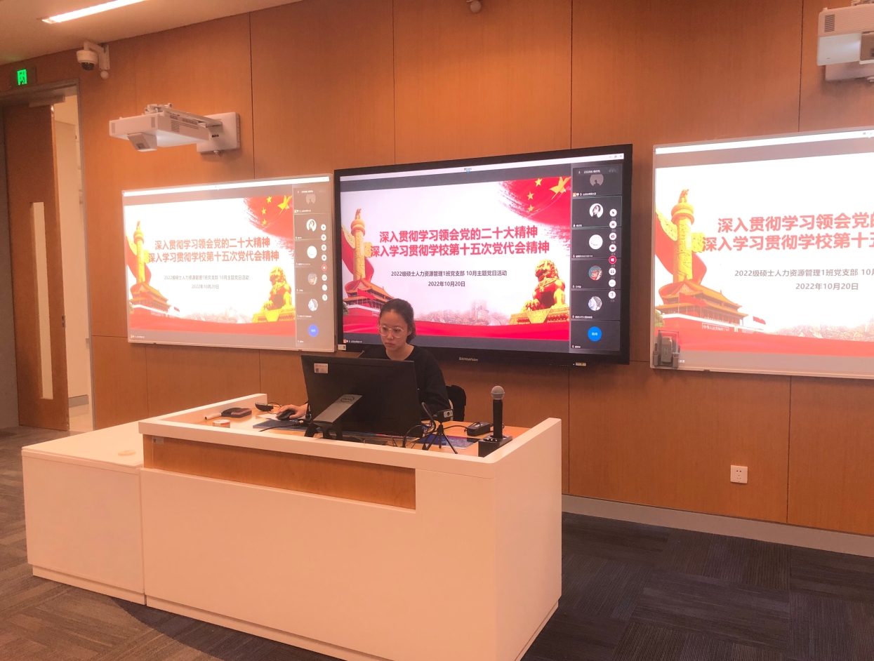 10月20日晚,2022级硕士人力资源管理1班党支部于立德楼0802开展“深入学习领会党的二十大精神和公司第十五次党代会精神”主题党日活动,主要环节包括集中学习、书法学习和心得交流。支部副书记杨欣悦主持本次活动,支部全体党员和部分积极分子通过线上线下相结合的方式参与本次学习。