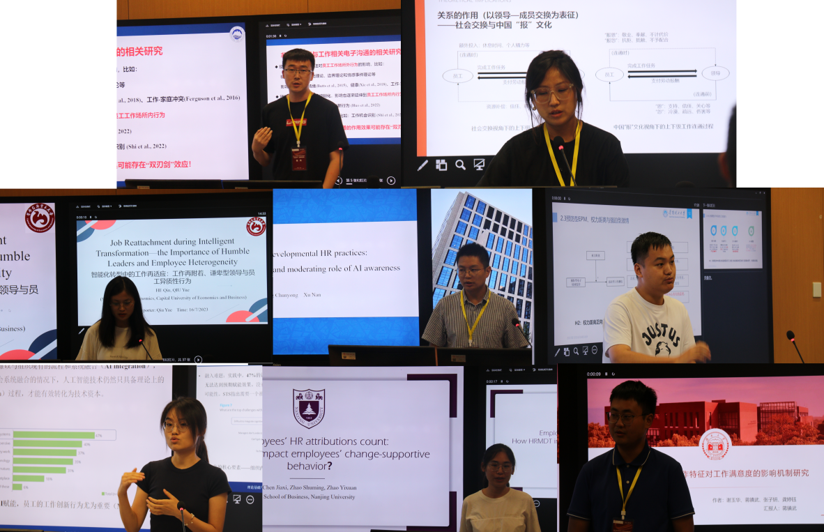 来自南京大学、厦门大学、湖南大学、华南理工大学、东北大学、西南交通大学、首都经济贸易大学、云南财经大学的8位专家学者进行了报告,内容涵盖数字化管理对员工认知与行为反应的作用机制、智能技术应用对工作创新行为的影响、智能化转型中的工作再适应、电子绩效监控对员工创造力的影响等管理学领域所广泛关注的前沿议题。