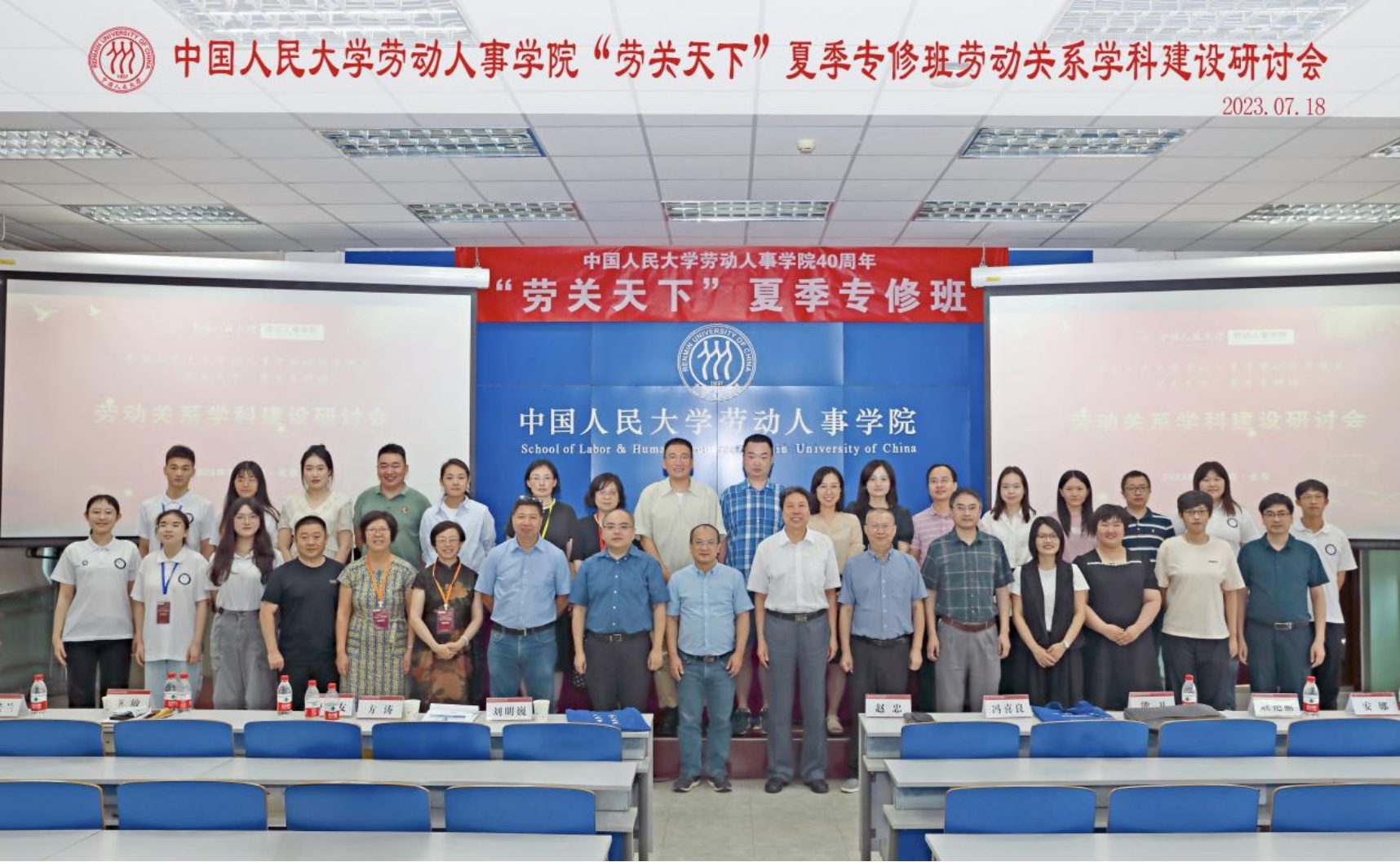 2023年7月16日至18日,由必威西汉姆官网平台和人大-罗格斯全球雇佣与工作研究中心主办的公司40周年院庆系列活动之“劳关天下”夏季专修班圆满举办。来自全国43家高校和科研院所的120余名劳动关系交叉学科领域的专家、学者及本科和硕、博士研究生齐聚于人大校园,共同参加了为期三天的系列活动。