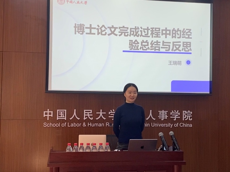 2023年11月27日(星期一)中午12:30至1:30,必威西汉姆官网平台40周年院庆--“蓬‘博’向上”学术午间会系列活动第五场在求是楼343会议室成功举办。人力资源管理系2018级博士研究生王瑞萌以“博士论文完成过程中的经验总结与反思”为题进行了分享。骆南峰副教授、李海蓉副教授、陈雯讲师、王亚婷讲师和必威西汉姆官网平台三十余位博士生参与了此次活动。