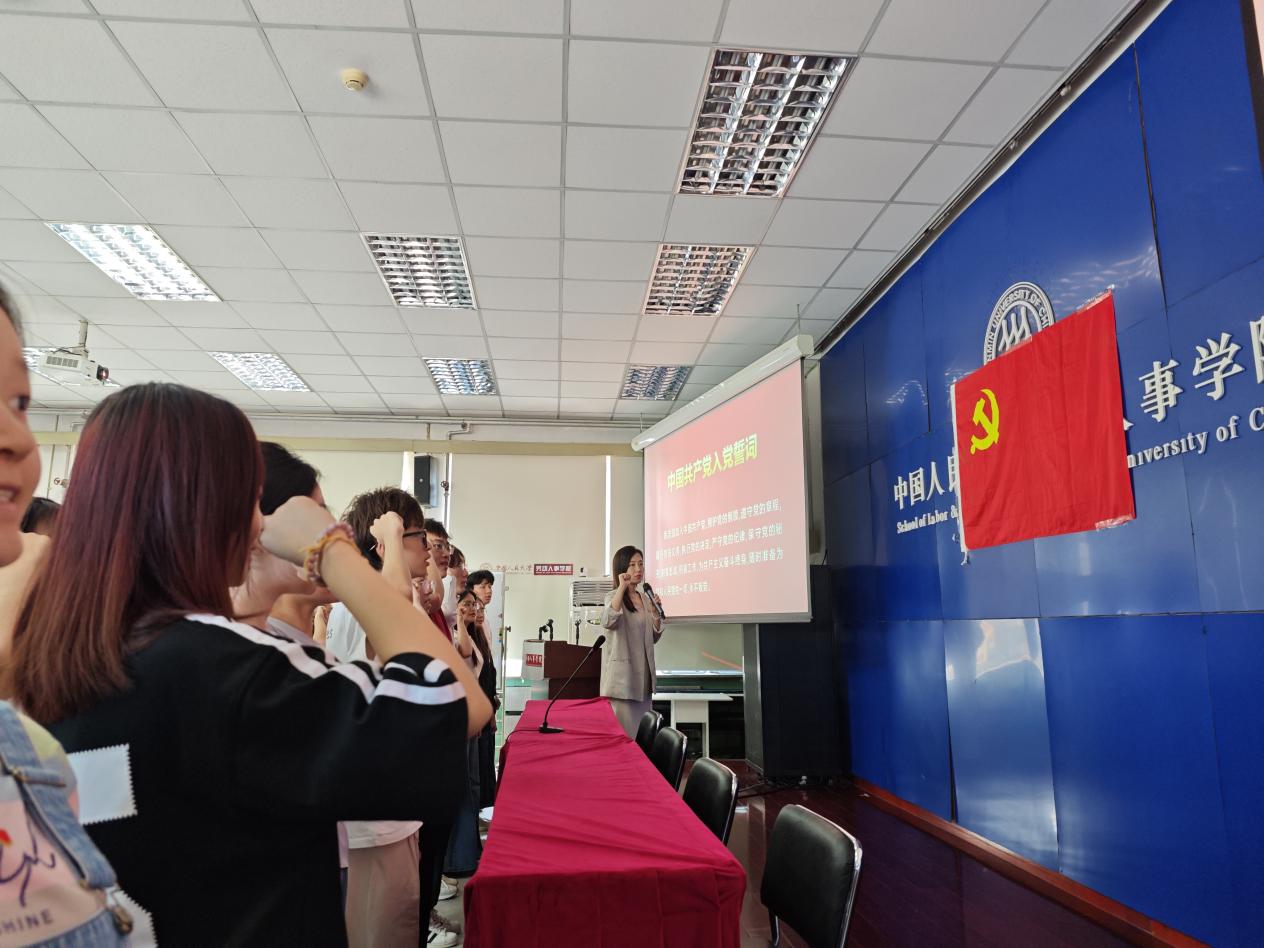 陈琦玥同志首先作为新接收预备党员代表发言,分享自己的入党历程与大学期间的成长历练,深情诉说预备党员们在党组织的关怀下信仰不断坚定的过程,代表全体预备党员做出牢记初心和使命,用实际行动诠释忠诚与担当的庄重承诺。
