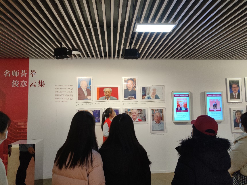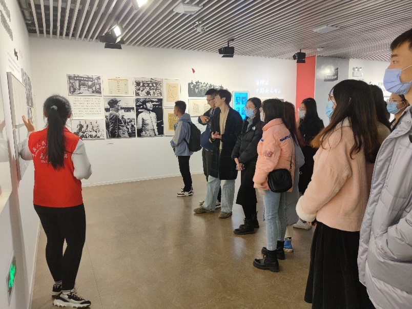穿过走廊,便进入校史展正厅。讲解员向支部成员详细介绍了中国人民大学从1937年陕北公学建立到如今的发展历程。
