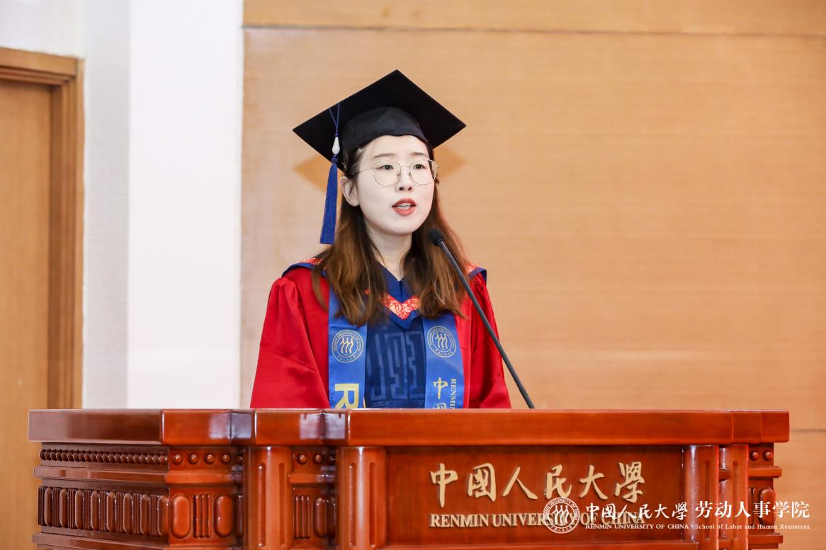 随后,2024年硕士学位获得者代表邵皖燕、王齐分别上台发言,分享了他们的求学心得与成长感悟。
