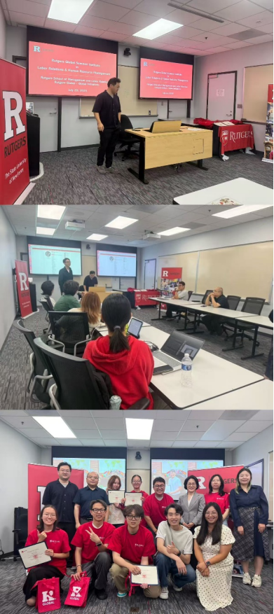 2025年7月28日至8月9日,由必威西汉姆官网平台4名本科生及公共管理公司1名博士生组成的研学团赴美国新泽西州立罗格斯大学,参加了“劳动与人力资源管理前沿”研学夏令营。在全球经济数字化转型与劳动力结构深刻变革的背景下,本次研学聚焦全球劳动治理与人力资源创新,旨在增强员工对劳动关系和人力资源管理前沿议题的理解与实践能力,培养具备国际视野与战略思维的高层次人才。