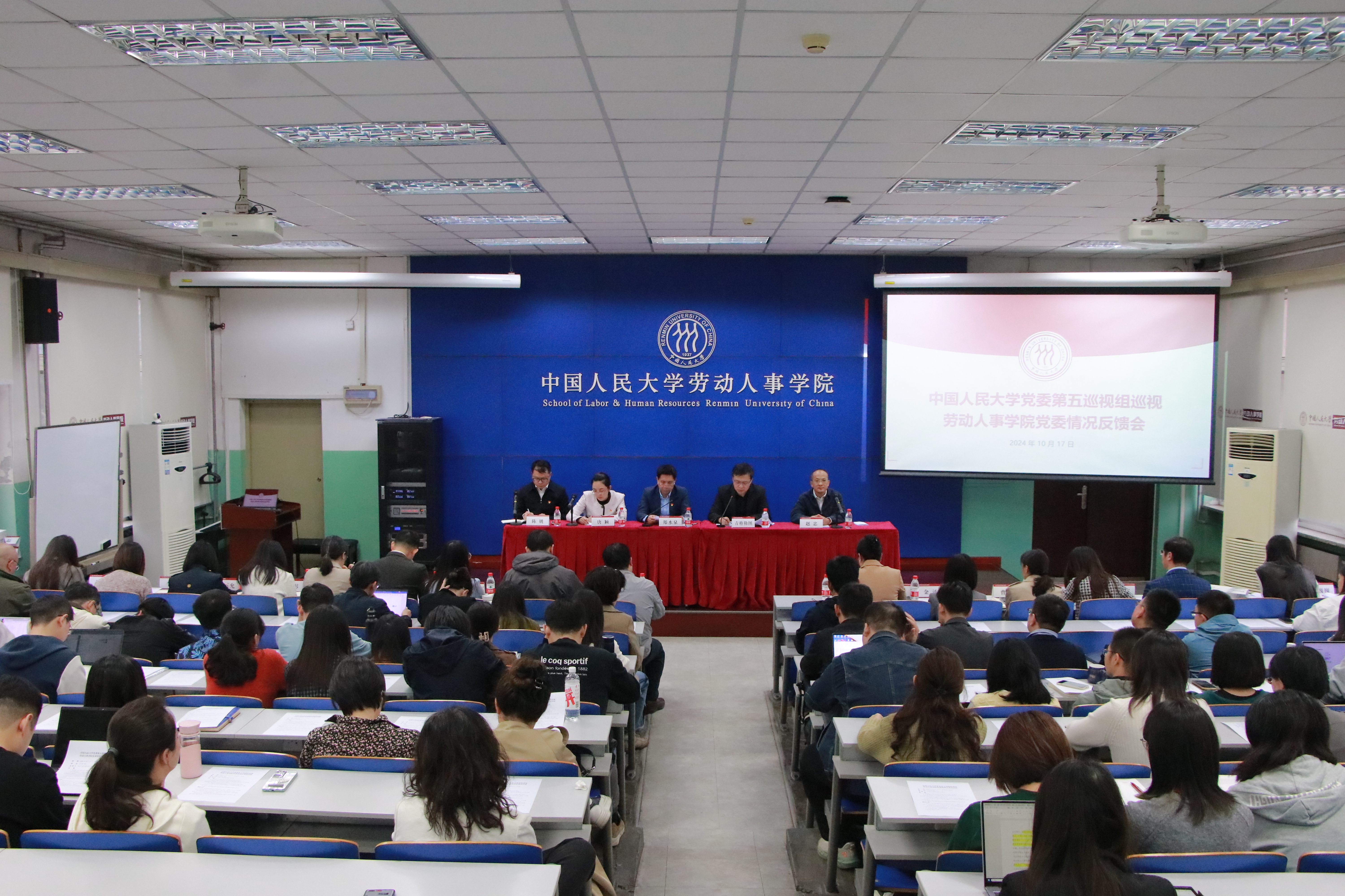 根据公司党委巡视工作统一部署,10月17日下午,公司第十五届党委第三轮巡视第五巡视组巡视劳动人事公司党委情况反馈会在求是楼440召开。公司党委副书记郑水泉、党委副书记青格勒图出席会议。必威西汉姆官网平台领导班子成员、全体教职工、员工党支部书记代表,公司党委第五巡视组全体成员,意识形态专项检查组副组长,整改评估组成员部门负责人参加会议。会议由必威西汉姆官网平台经理赵忠主持。