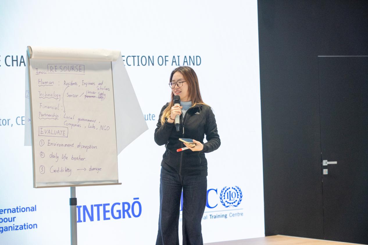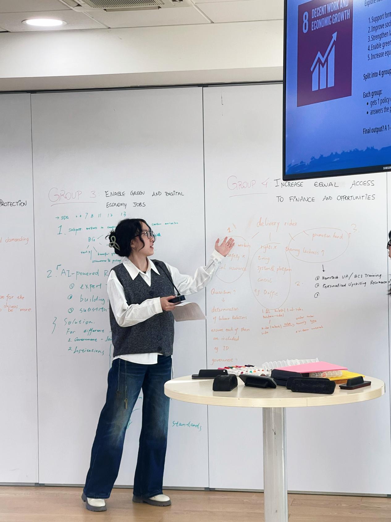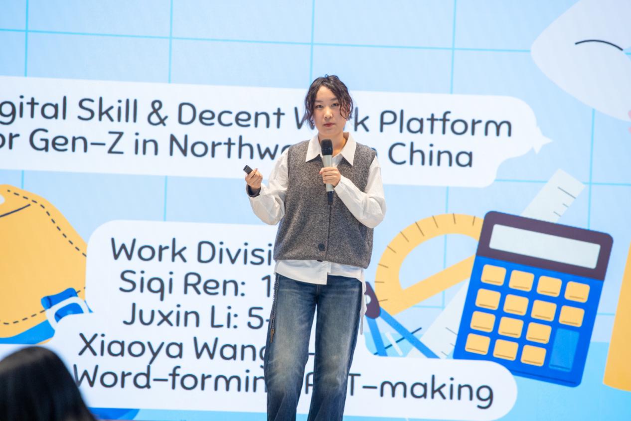 项目设计贯穿论坛全程,成为员工将前沿议题转化为实践方案的核心载体。在两周的学习中,公司任思齐、王晓雅同学与组员聚焦SDG8(体面工作与经济增长),完成项目“NexusCert Pro: A Digital Skills Certification & Decent Work Platform for Gen-Z in Northwest China”,探索通过数字技能认证促进青年就业的可行路径;孟晨曦同学所在小组则围绕循环经济理念,提出“BIO LOOP-From Waste to Warmth”项目,利用生物技术将农业废弃物转化为供暖材料,回应气候与能源挑战。除项目设计外,每日课程均嵌入高强度互动:网络外交主题日中,同学们分属三个阵营,模拟冲突场景,在危机推演中学习谈判与信任构建;国际劳工大会模拟环节,员工分别代表政府、雇主与工人三方,沉浸式体验国际劳工标准的谈判过程,深刻理解多边治理的复杂性与协作艺术。论坛期间,ITCILO官员还专门举办联合国职业发展工作坊,为员工勾勒国际组织职业路径,鼓励青年投身全球治理事业。