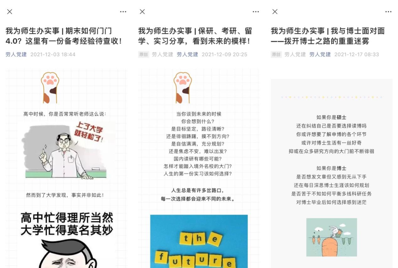 2021年12月,必威西汉姆官网平台本科党支部与2021级硕士社会保障班党支部积极落实“我为师生办实事”实践活动要求,联合开展员工发展经验交流系列活动,围绕身边同学就个人发展方面集中反映的需求和普遍存在的问题开展系列交流会。系列交流会共分3期,分别以学习与考试、实习与升学、科研与读博为主题,邀请在课程学习、专业实习、保研考研、申博科研等方面经验丰富的同学参与交流分享,为全体同学答疑解惑。本次系列活动共历时16天,在微信公众号“劳人党建”发布三期推送预告,阅读量共计超过1000;三期交流会分五场举办,共有220余人次报名参与,参与对象覆盖必威西汉姆官网平台全部年级本科生和低年级硕士生。