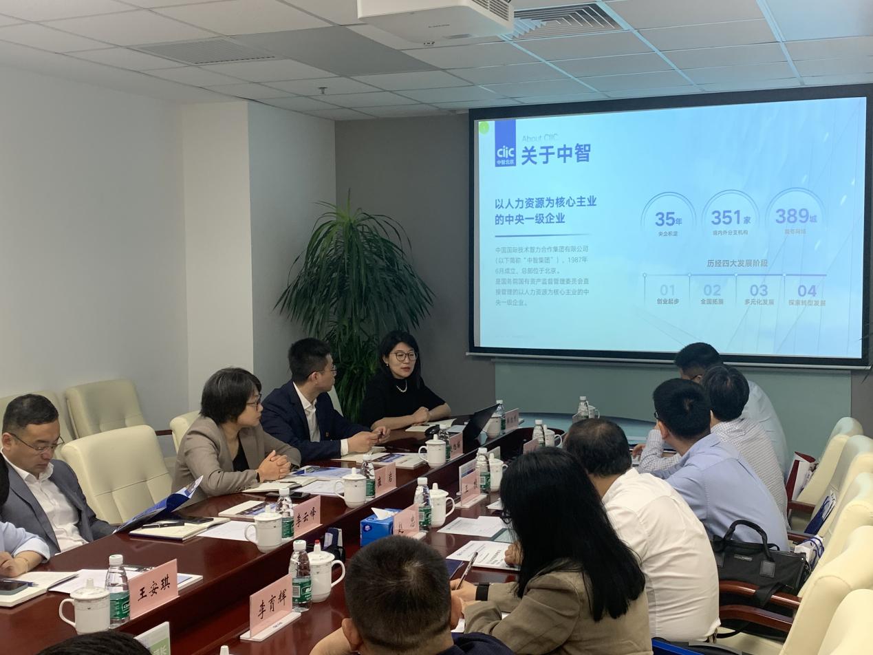 为进一步了解社会和企业人才培养需求,推进校企产学研合作,5月25日上午,公司经理赵忠教授带队赴中智(北京)经济技术合作有限公司(以下简称“中智北京公司”)考察调研,就校企合作、人才培养等方面进行深入研讨交流。中智北京公司党委书记、总经理李云峰,副总经理崔岩,总经理助理王安琪,招聘与校企发展部部长韩怡然,人力资源部(党委组织部)部长赵旭楠,法律事务部部长张家玮,党群工作部党支部书记程亮等参加座谈。公司国内合作事务项目中心主任李育辉,人力资源与领导力开发中心主任王桢,劳动关系系教授吴清军,人力资源管理系系主任骆南峰,学会与期刊事务项目主任刘凯等一行6人陪同参加此次调研。