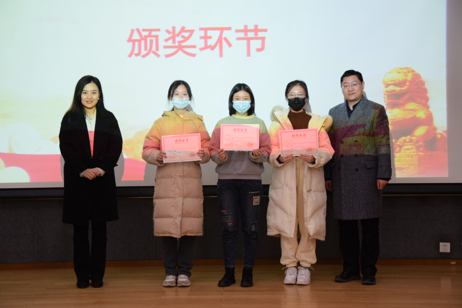 比赛环节结束后,主持人宣布了本次党史知识竞赛决赛的获奖情况。党委副书记吴自强老师、党委委员郭瑜老师为获奖队伍颁奖。