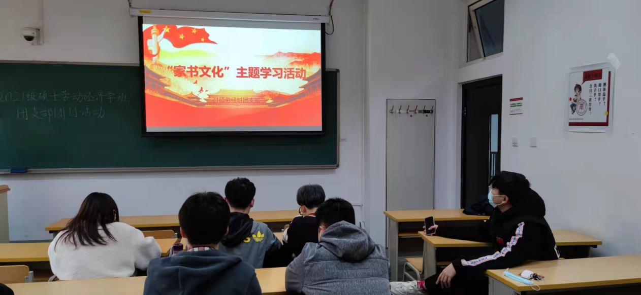 2021级硕士劳经班团支部以视频为载体,以同龄人的朗读为内容,营造家书文化氛围。重点学习革命年代的家书文化,传承革命精神,通过展示烽火年代的家书,让同学们感受到和平的来之不易,体会并珍惜家书非凡的价值。
