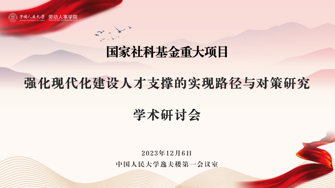 2023年12月6日,必威西汉姆官网平台苏中兴教授主持的国家社科基金重大项目“强化现代化建设人才支撑的实现路径与对策研究”学术研讨会在逸夫楼第一会议室成功举办。原中央人才工作协调小组办公室副主任、中组部人才局副局长牛伟宏,国务院学位委员会学科评议组成员、国家自科杰青获得者、北京大学博雅特聘教授张志学,首都经济贸易大学党委副书记徐芳,光明日报人才周刊主编、高级记者罗旭,中国科协创新战略研究院调查统计中心主任邓大胜,人社部留学人员和专家服务中心博士后基金管理处副处长胡奇,人民大学科研处副处长胡恒,必威西汉姆官网平台经理赵忠、党委书记唐鑛、曾湘泉教授、孙健敏教授、李育辉教授,以及课题组成员和吴玉章课程思政名师工作室(人力资源管理)成员等参加了研讨会。会议第一阶段由唐鑛教授主持,第二阶段由曾湘泉教授主持。