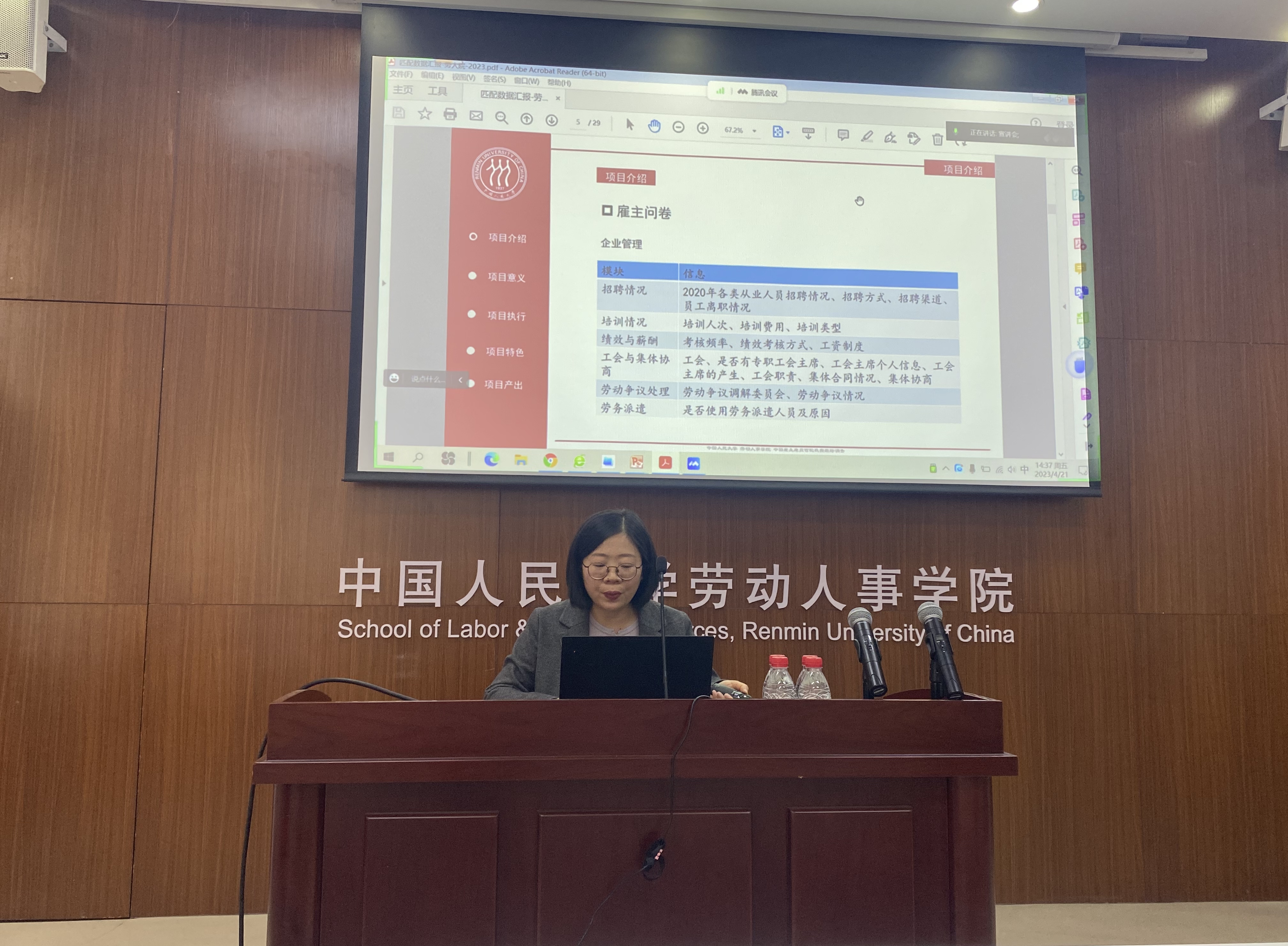 宣讲会由必威西汉姆官网平台劳动经济系主任赵丽秋副教授主持。首先,她简要介绍了调查项目的总体情况,包括问卷调查的结构和内容、项目特色和主要产出成果。