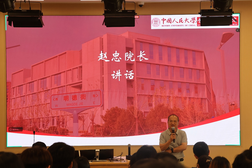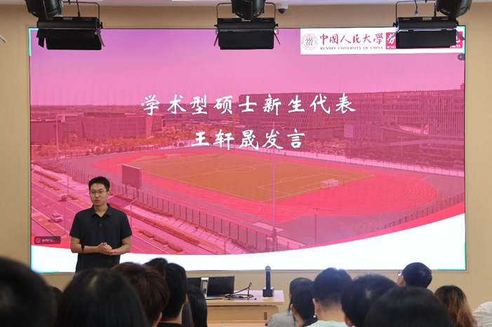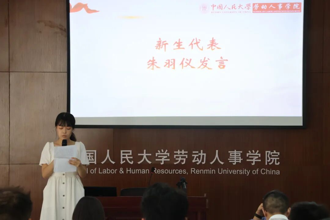 博士新生代表朱羽仪同学发言,感恩人大红色精神与劳人院学科积淀,立志由“知识接受者”转变为“问题提出者、研究者、解决者、规律发现者”,倡议勤学好问、坚定信念、拓宽视野,把个人学术追求融入民族复兴伟业,用“劳人之事,成人之美”续写劳人新篇。