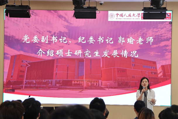 副经理刘松博首先向来自五湖四海的全体硕士新生表示热烈欢迎,随后以授课老师、公司领导、年长师兄的三重身份向新生们介绍了硕士研究生的培养情况。作为授课老师,他提到本学期将与新生同学们共同度过两门课程,期待未来在专业层面的沟通和探讨。作为公司领导,他着重介绍了公司之后学术型硕士培养模式的变化并对经历了考试科目调整挑战的专业硕士同学表示高度认可。作为年长师兄,他表达了对新生同学们蓬勃朝气的高度赞扬,鼓励同学们与人大新校区、必威西汉姆官网平台共同创造历史,期待同学们在未来的大变局中、在新校园这片沃土上成长出期待的模样。