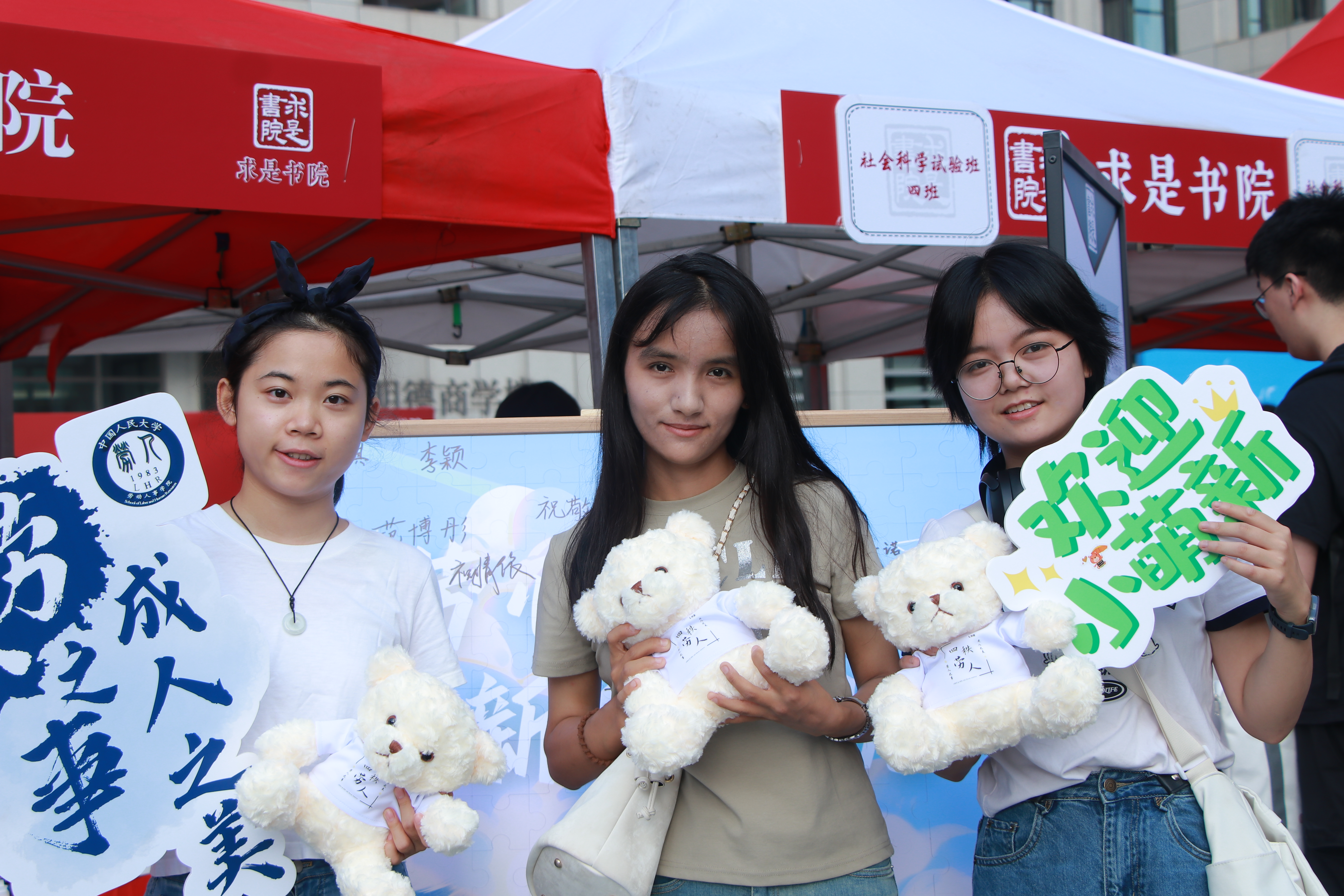 迎新过程中,公司领导和老师们来到迎新摊位共同参与工作,和2024级劳人新生亲切交流,对现场忙碌的志愿者们进行慰问。