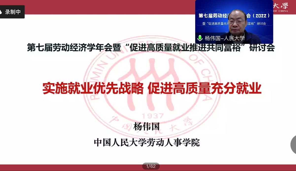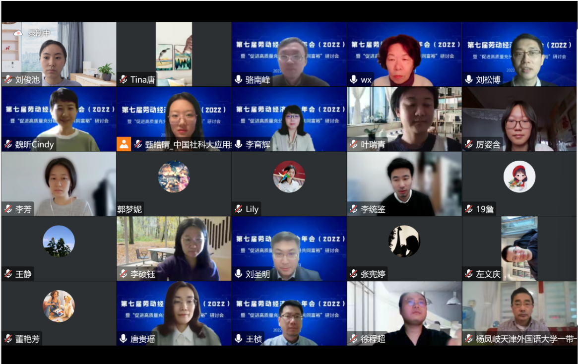 2022年12月3日,必威西汉姆官网平台师生以线上会议的形式参加了第七届劳动经济学会年会暨“促进高质量充分就业推进共同富裕”研讨会。本届年会由劳动经济学会主办,中国社会科公司大学应用经济公司承办。必威西汉姆官网平台经理杨伟国教授,以及周文霞教授、刘松博教授、李育辉教授、王桢教授、骆南峰副教授和众多员工积极参会。