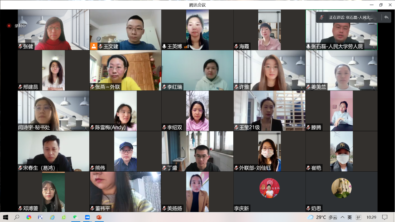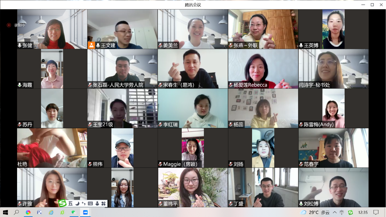 理事会成员逐一进行自我介绍。疫情虽阻挡了线下相见,但却阻挡不了相聚的热情。来自金融、IT、咨询服务等不同行业,横跨京、晋、冀、鲁、内蒙古等不同省市,熟悉创业、培训、劳动关系、心理学等不同技能新老理事会成员们线上齐聚。