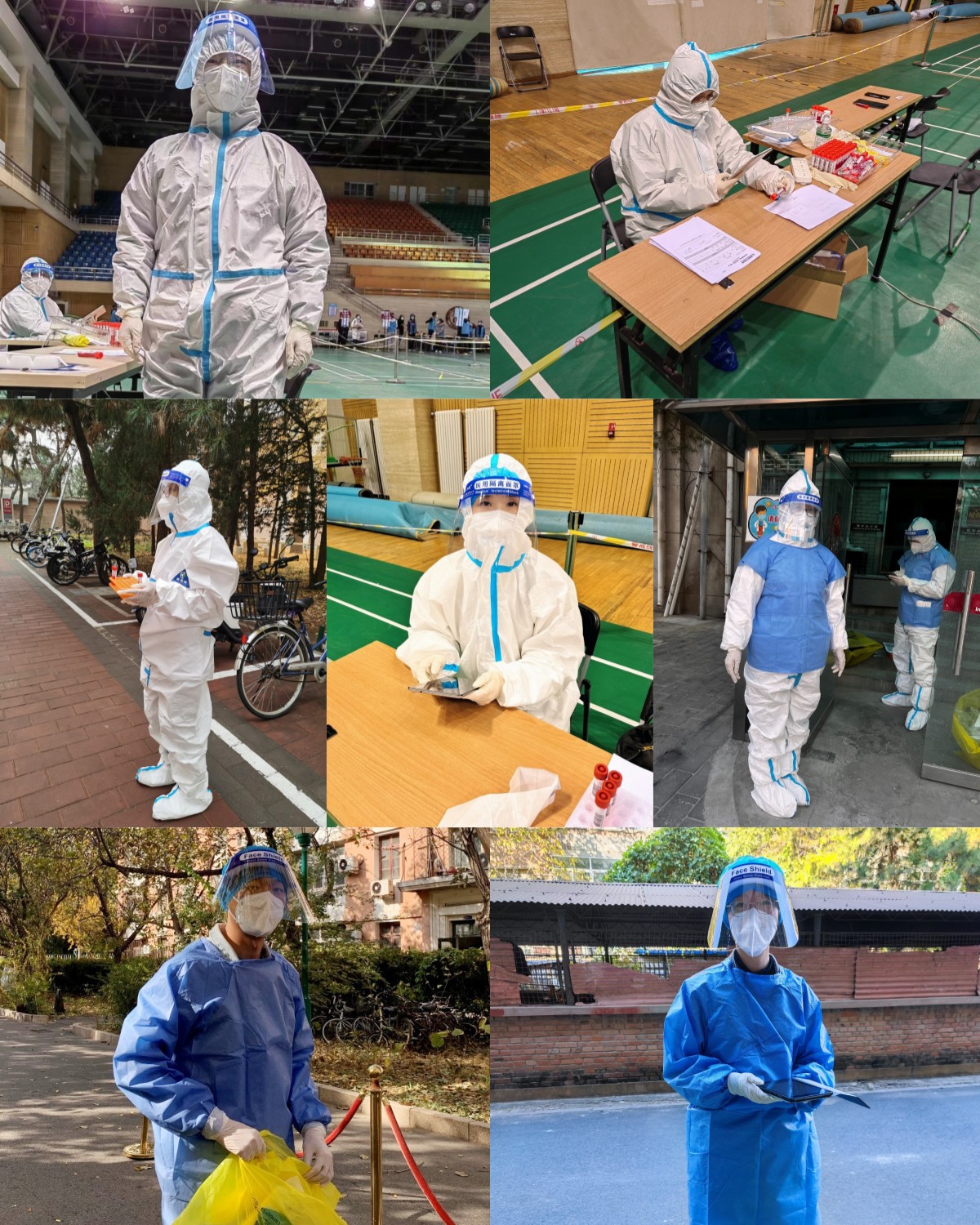 青年教师林琳为校内隔离人员核酸采样工作提供辅助。她表示,我又一次参加公司疫情防控志愿服务,协助采样员登记检测人员信息。第一次穿上“大白”防护服,尽管采样工作有一定风险,但是能够为同学服务的使命感油然而生。在检测过程中,采样员老师向我介绍了工作的细节,其中有很多不易之处,令我感到非常钦佩。我仅仅是参与了一天上门核酸检测的工作,而校医院的采样员老师们需要每天都面临着高风险,但是他们在工作中体现出的专业性和认真负责的态度,非常值得我学习!