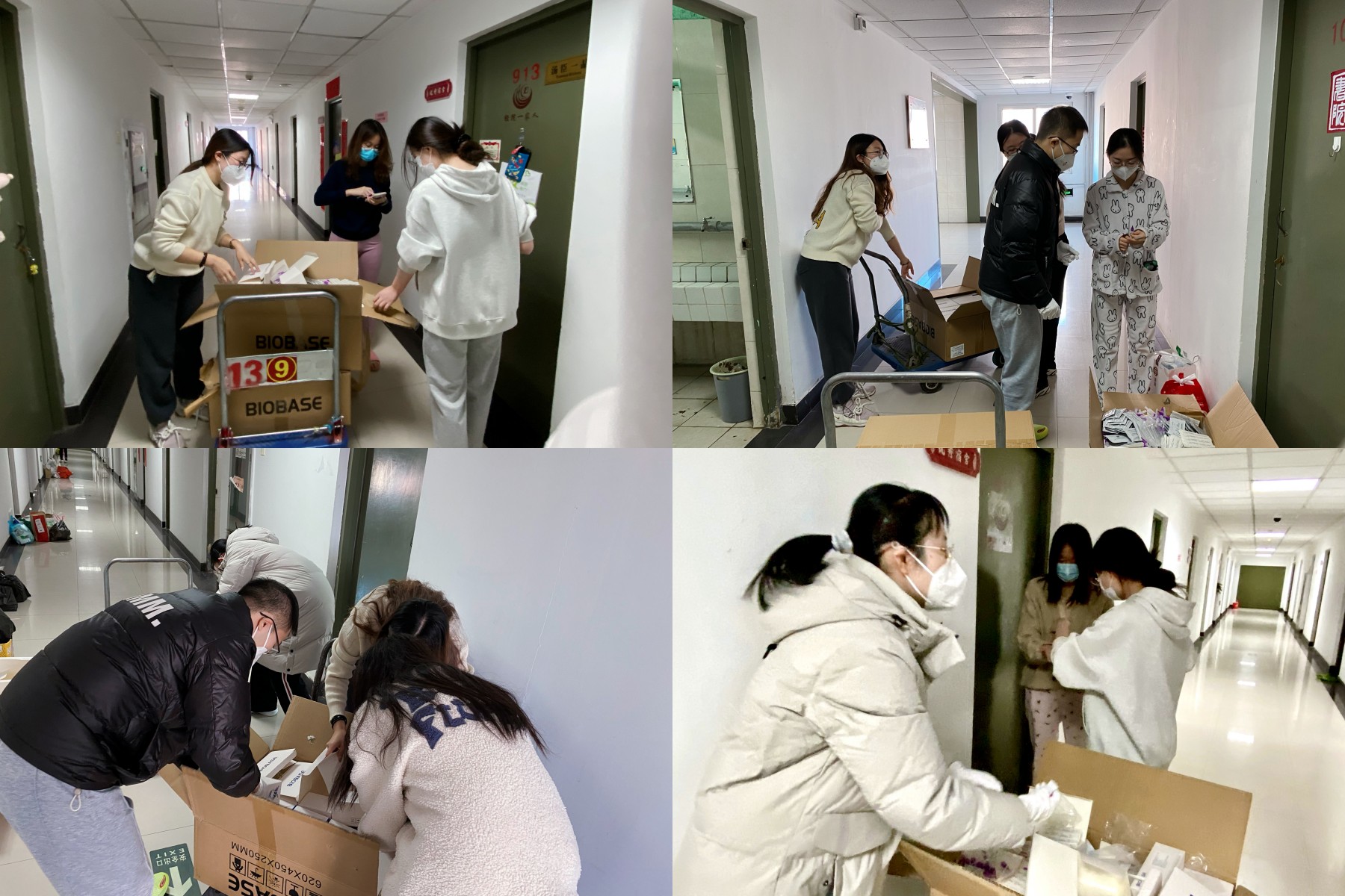 知行五楼的志愿者为各楼层和宿舍配发物资,扛住了先后三次全楼封控的压力,守住一方平安;部分志愿者进驻公司办公室,在各科室老师远程指导下为师生继续办理业务,保证了公司工作的正常运转;还有志愿者在寒风中为隔离员工配送物资,为师生递送材料……